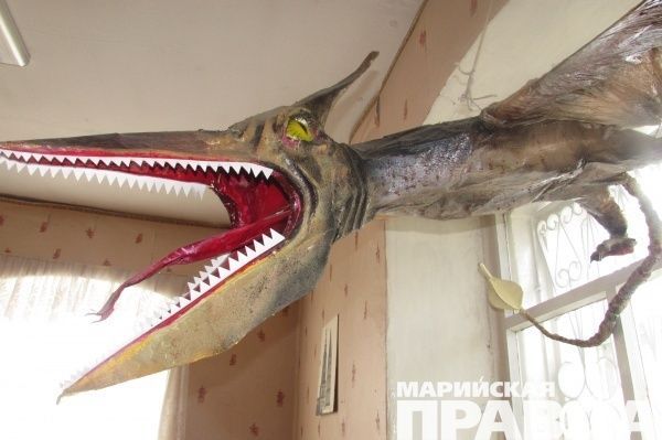 - Все выходные, не разгибаясь, клеил его, - вспоминает с улыбкой мастер. – В целом получилось сохранить у меня образ птеродактиля, хотя в нем есть элементы от других динозавров.