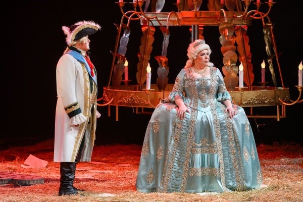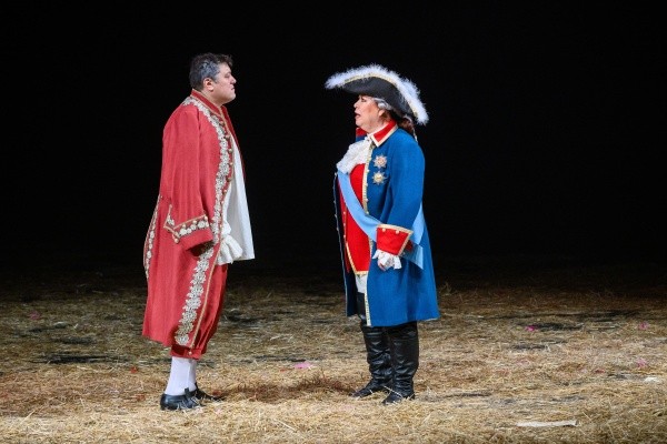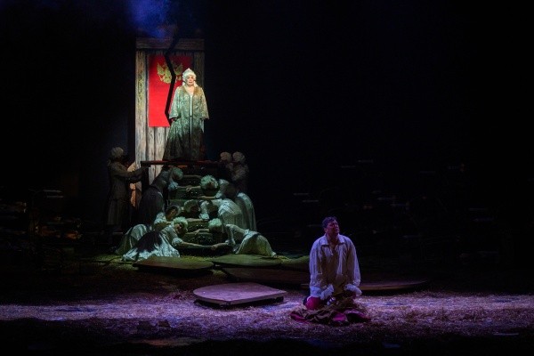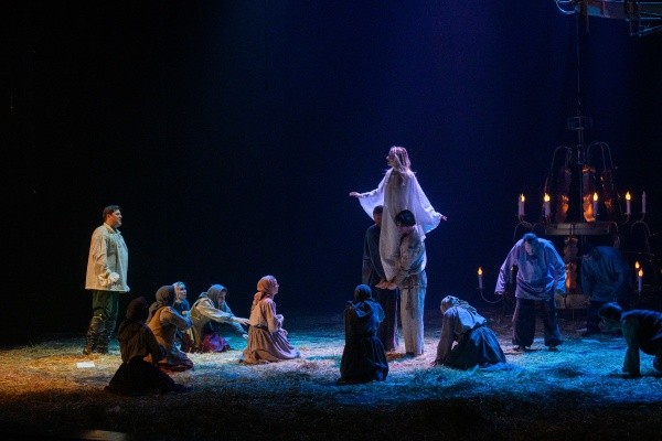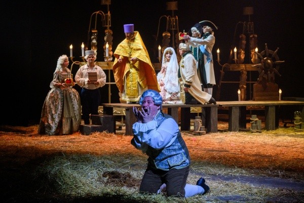 Показалось, правда, что в некоторых моментах использовались слишком громкие звуковые эффекты, но это исключительно мое ощущение. Можно лишь догадываться, сколько трудов вложили в подготовку спектакля те, кто всегда остается за сценой: столяры, гримеры, костюмеры, бутафоры, монтировщики. Одно только присутствие огромного количества свежего сена на полу сцены говорит о том, что невозможное возможно, когда есть цель, которая оправдывает средства. Отдельно отмечу работу пошивочного цеха театра им. Г. Константинова. Костюмы, придуманные художником и ожившие в руках мастериц, ослепляют роскошью и заслуживают отдельных аплодисментов. Браво! Пластическим рисунком и хореографией в спектакле занималась Екатерина Хаустова, ей удалось не перегрузить действо танцевальными па, а создать нужную атмосферу и сделать непростое повествование еще объемнее.