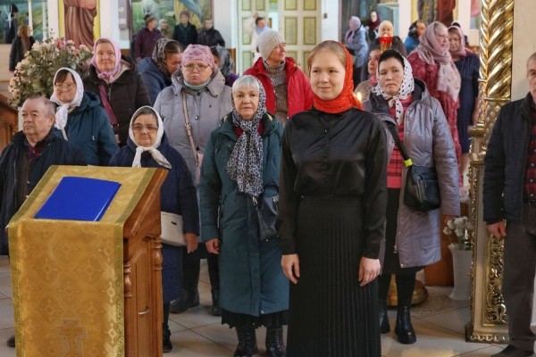 На службу пришли люди с ограничениями по слуху из общины глухих и слабослышащих Йошкар-Олинской епархии, инвалиды Волжского местного отделения общества глухих и прихожане Никольского кафедрального собора. В завершение участники йошкар-олинской общины глухих подарили священнослужителям Волжска покровцы и платы, а ответным подарком им провели экскурсию.