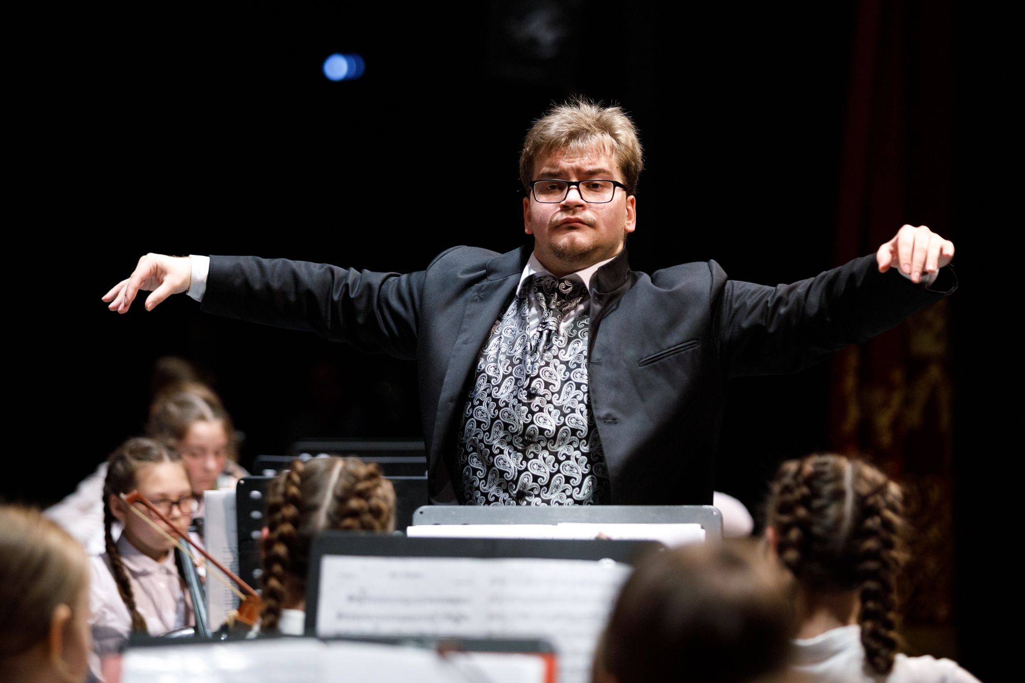 В состав Всемарийского детского симфонического оркестра вошло без малого 100 учеников школ искусств со всей республики. В том числе учащиеся Национальной президентской школы искусств, а также ребята из Морков, Куженера, Сернура, Медведево, поселка Юбилейный и, конечно, начинающие музыканты из Йошкар-Олы.- Для нашей республики этот концерт - поистине историческое событие, - сказал Константин Иванов. – Сердце радуется, душа поет, когда смотришь на выступление юных, но уже профессиональных музыкантов, овладевающих, прежде всего, такими редкими инструментами, как валторна, гобой, туба, фагот, кларнет. Это впечатляет. И, безусловно, никакой симфонический оркестр не обходится без скрипок, виолончелей, флейт. В этом смысле наш коллектив укомплектован практически на 100 процентов. Но, тем не менее, скажу, что это не какое-то развлекательное шоу для родителей, педагогов и зрителей. Это образовательный процесс. Наша задача – объединять, увлекать детей, занимающихся в школах искусств, идеей серьезного погружения в искусство, чтобы потом как можно больше из них оставались в республике и работали в культуре.