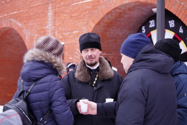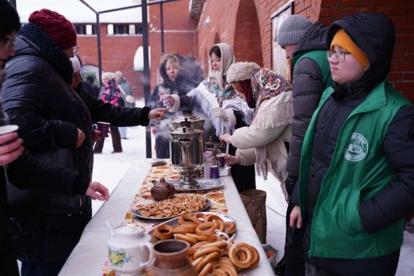 Несмотря на легкий мороз, на празднике было жарко и весело. Традиционные забавы на свежем воздухе полюбились молодежи. Все желающие могли выпить горячий чай из самовара с баранками, а также угоститься солдатской кашей из полевой кухни. Угощение разносили коробейники в традиционных русских костюмах.