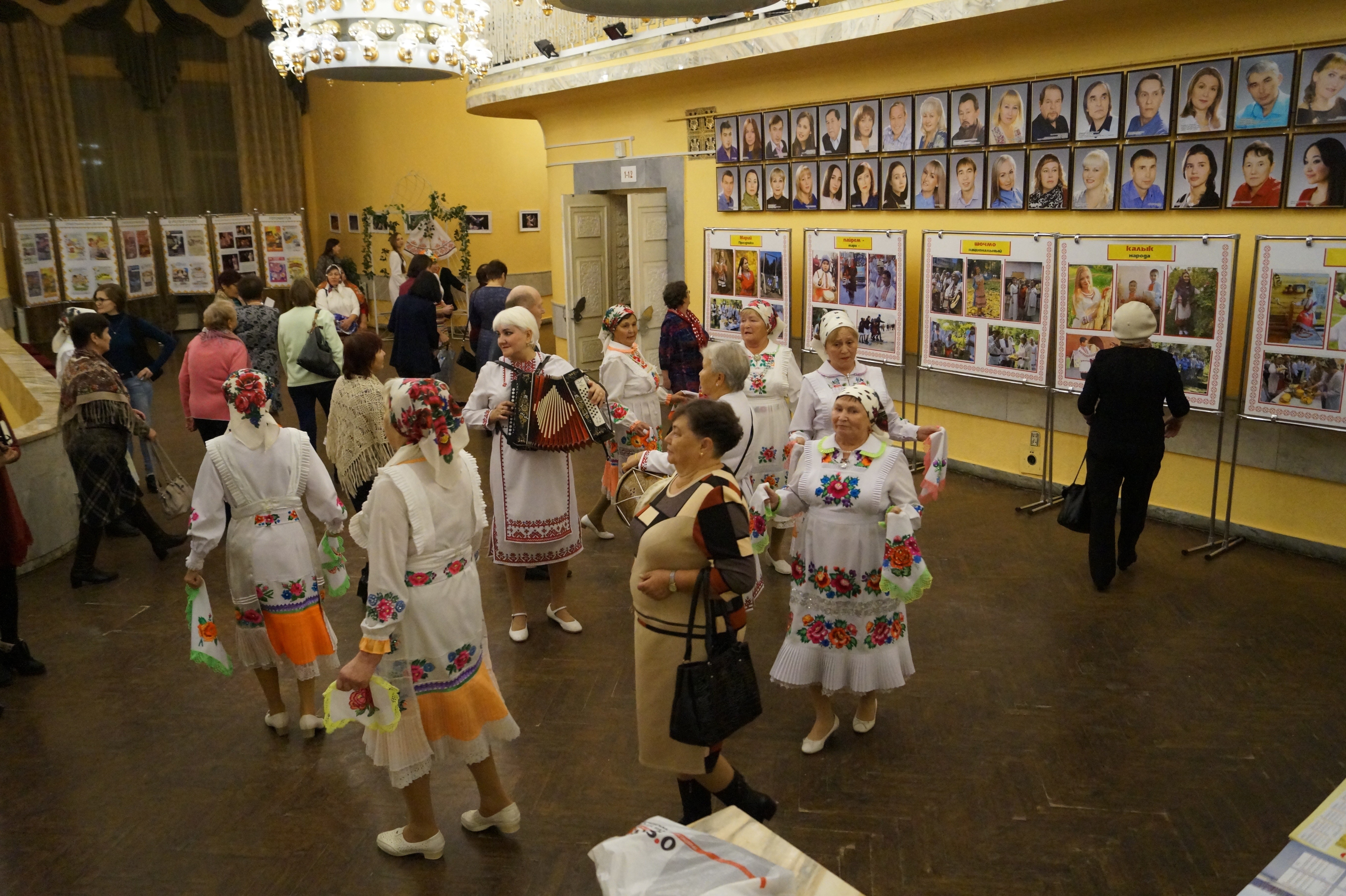 Кстати, у входа в театр зрителей тоже угощали марийским национальным блюдом – команмелна, а в фойе второго этажа гости и участники мероприятия танцевали под музыку фольклорного ансамбля «Чон онгыр». Также гостей «Девичьего пира» ждали приятные моменты в виде фотовыставки «Марий калык пайрем – шочмо элын тӱсшӧ» (Праздники народа мари – национальный колорит страны») и фотозоны.