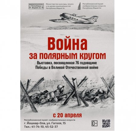 В Республиканском музее изобразительных искусств 20 апреля откроется выставка «Война за полярным кругом», посвященная малоизвестным страницам истории Великой Отечественной войны. Посетители смогут увидеть фотографии, сделанные йошкар-олинским студенческим поисковым отрядом "Воскресение" во время экспедиции в Заполярье.