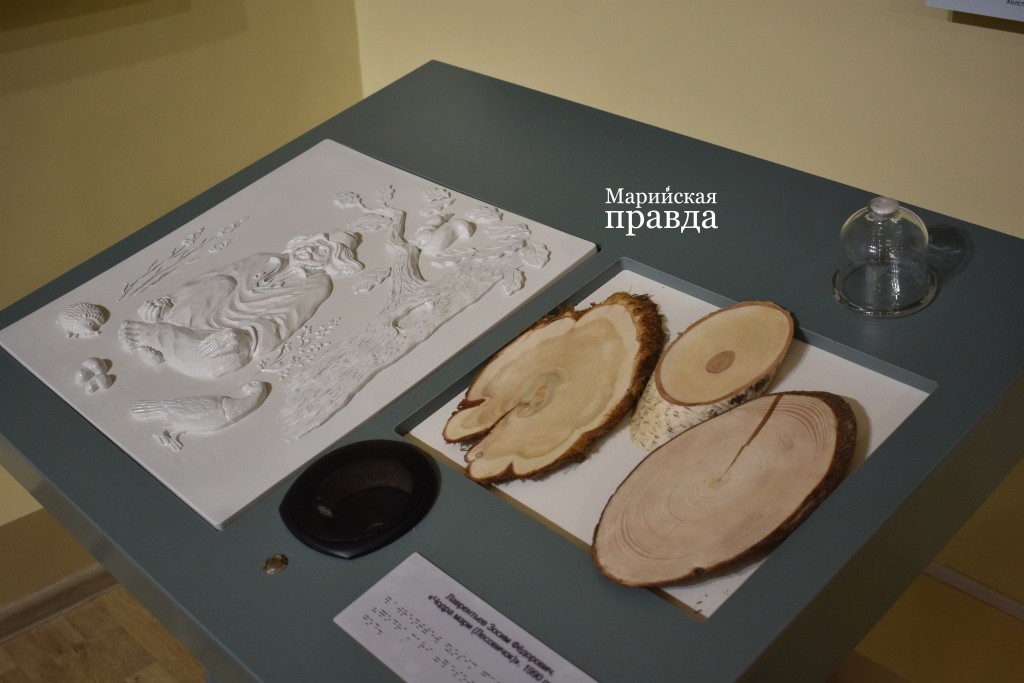 По словам специалистов музея, картины более детализированы, чем барельефы, и спектр того, что можно потрогать, относительно невелик – ладонью чувствуются только самые основные элементы, на которые опирается экскурсовод. Интересно, что в зависимости от образовательных программ на выставке барельефы будут меняться, а значит, слепые и плохо видящие люди смогут посещать ее неоднократно. Работы были выполнены специально для проекта «Трогательный мир марийской культуры».