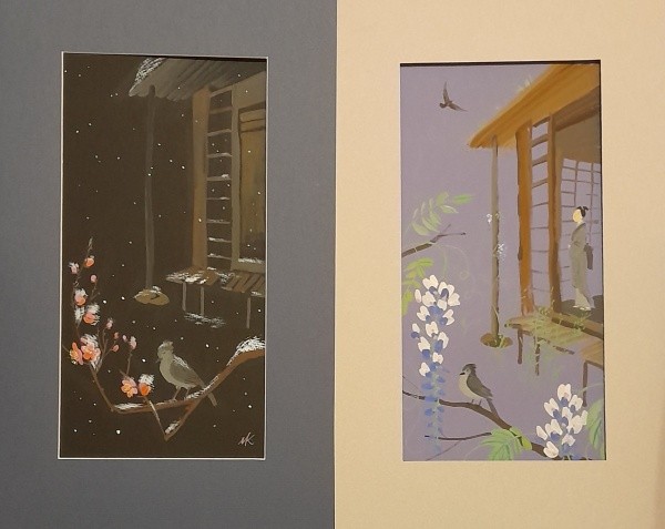 Особое место на выставке занимают иллюстрации к японской классической поэзии и прозе. Японское искусство для Марии Клюкиной – это серьезное увлечение с самого детства. На каждый день рождения девочке папа (Юрий Петрович Клюкин, известный в Марий Эл художник-график) дарил томик японской поэзии. Поэтому танка и хайку для Марии – это всерьез и надолго. В работе над иллюстрациями к японской литературе художник учится у японского искусства созданию душевной тишины и учит этому своих зрителей. В ее иллюстрациях ясная и тихая природа выражает и порождает светлое и тихое душевное состояние человека.