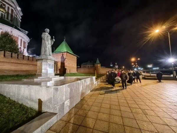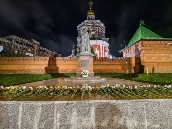 Завершилось мероприятие показом видеоролика о царе Феодоре Иоанновиче, основателе города. После этого участники вечера, держа в руках цветы, отправились на Воскресенскую набережную, где с пением величания праведному царю возложили цветы к его памятнику.