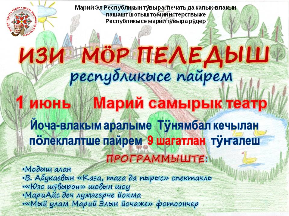 1 июня в столице Марий Эл на площадке Марийского театре юного зрителя пройдет детский праздник «Изи мӧр пеледыш» («Цветы жизни»). Мероприятие это будет интересно тем, что его проведут на марийском языке и в национальных нарядах.