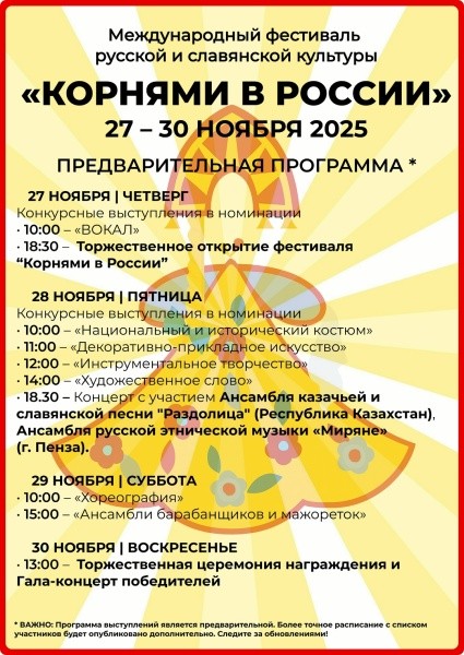 С 27 по 30 ноября в столице Марий Эл пройдёт международный фестиваль-конкурс русской и славянской культур «Корнями в России».