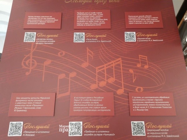 28 мая в рамках проекта прошел концерт оркестра «Марий кундем» и творческих коллективов колледжа культуры и искусств им. Палантая. В фойе филармонии тем временем открылась выставка, благодаря которой посетители могут узнать о талантливом артисте Марийской государственной филармонии Стекольщикове – том самом Тойдемаре, который вместе с ансамблем дал более 1165 концертов на фронте, и историю происхождения марийских гуслей, ставших национальным брендом республики. С помощью интерактивных стендов можно не только узнать об устройстве музыкального инструмента, но и послушать мелодии, когда-то звучавшие для бойцов ‒ понадобится навести телефон на куар-коды, размещенные на стенде.