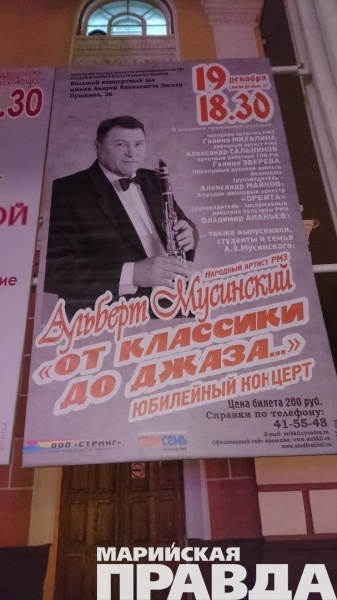 Концерт состоится в Колледже культуры и искусств им. И.С. Палантая, где уже много лет преподает Альберт Мусинский, 19 декабря, в 18.30.