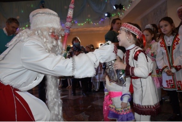 Девчонки и мальчишки погрузились в волшебную атмосферу с участием любимых персонажей из марийских сказок: Вувер кува (Баба яга), Кадыр тоя (Кривая палка), Теле (Зима), Агытан (Петух). Помимо незабываемых эмоций дети получили сладкие подарки.
