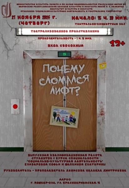 Колледж культуры и искусств имени И.С.Палантая в Йошкар-Оле приглашает зрителей на театрализованное представление "Почему сломался лифт?".