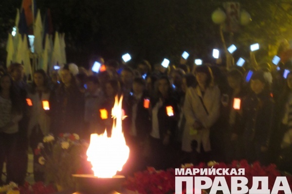 В Йошкар-Оле у Вечного Огня школьники зажгли свечи и смартфоны