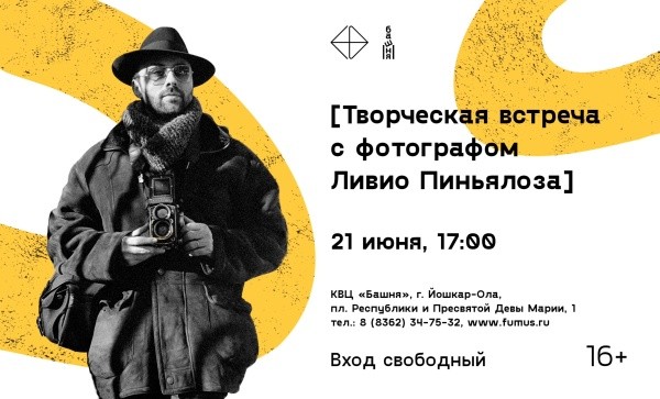 Сегодня, 21 июня, в 17:00 в культурно-выставочном центре «Башня» состоится бесплатная творческая встреча с итальянским фотографом Ливио Пиньялоза.