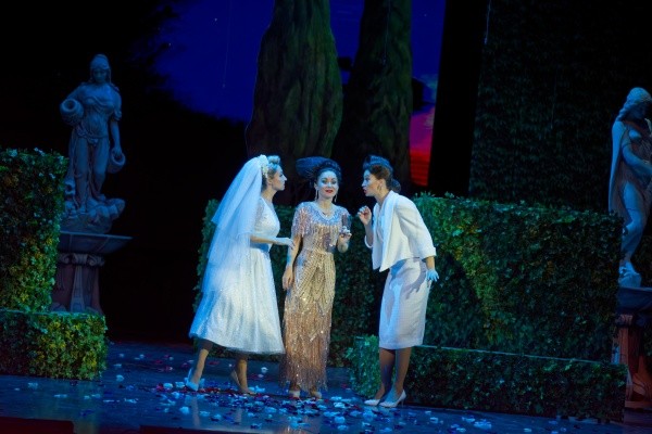Но нет никаких сомнений в том, что ни один зритель, посетивший оперу «Свадьба Фигаро», не останется равнодушным к исполнительскому мастерству и солистов, и артистов хора. Вокальные партии Валерии Баландиной (Сюзанна), Майи Рийверс (графиня Розалина), Александра Шейпака (граф Альмавива), Сергея Гарашкина (Фигаро), Дмитрия Семкина (Дон Базилио), Анастасии Ершовой (Барбарина), Кристины Довидайтис (Керубино) и других вызывают огромное уважение и заставляют от всего сердца преклонить голову перед титаническим трудом, с которым столкнулась вся творческая команда при подготовке спектакля. Выучить огромные тексты партий на итальянском языке, не просто заучить, а вникнуть в смысл, пропустить через себя, затем три часа (!) существовать на сцене в постоянном движении, еще пытаясь не просто петь, танцевать и играть, как драматические актеры, – это испытание на прочность. Не только физическую, а профессиональную в первую очередь. Справились! Браво!