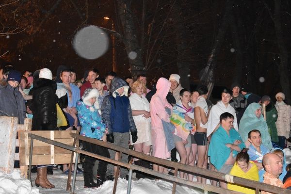 В Йошкар-Оле в ночь на 19 января, в Крещение в ледяную воду окунулись несколько сотен человек, причем, в основном, молодежь.