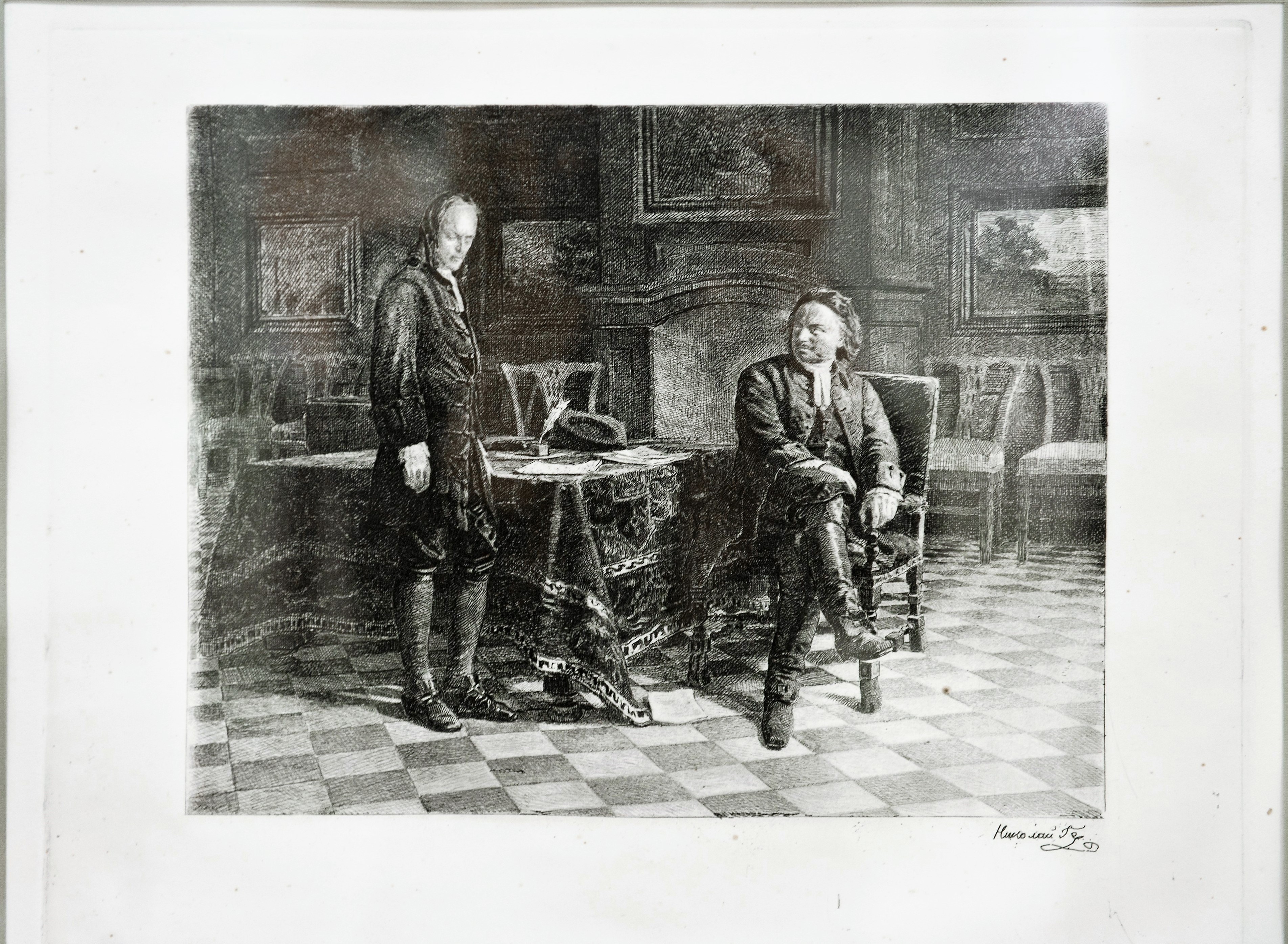- Экспозиция нашей выставки включает в себя произведения изобразительного искусства из фондов Республиканского музея изобразительных искусств, Национального музея Республики Марий Эл им. Т.Евсеева и частных коллекций, - поделилась информацией Наталья Степанова, врио директора Республиканского музея ИЗО. – Но особую ценность ей придают уникальные гравюры из коллекций, переданных в свое время нам из Государственного Эрмитажа и Государственного Русского музея. Кроме того, здесь представлена и работа Николая Ге, офорт с его живописной картины «Петр I допрашивает царевича Алексея в Петергофе», выполненный собственноручно знаменитым художником. Надо сказать, что это не единственная уникальная гравюра на выставке. Здесь можно увидеть работы Степана Галактионова и Андрея Мартынова, выдающихся мастеров XIX века, профессоров Императорской Академии художеств.