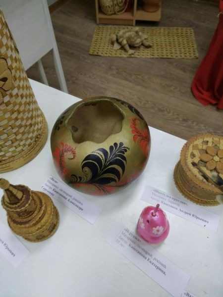 - Например, семья Каштановых. Папа умеет грамотно работать с берестой, мама занимается росписью. Обратите внимание, вот обработанная и засушенная корочка лагенарии. Это растение из семейства тыквенных, которое растет только в тепле, на южных территориях, в том числе и в Крыму. Мама, как энтузиаст, выращивает эту лагенарию, специальным способом высушивает и делает такие красивые расписные работы, - рассказывает заведующая концертно-выставочной и творческой деятельностью школы Галина Баканова.