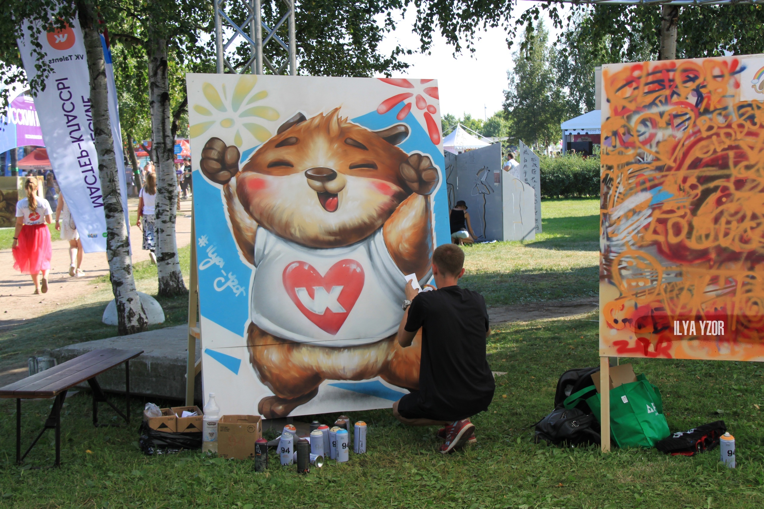 - Во второй день фестиваля я давал мастер-класс по граффити. Он был запланирован для детей, но и взрослых, желающих порисовать, было не меньше. Во время мастер-класса я рисовал хомяка - он есть в разделе подарков ВК.