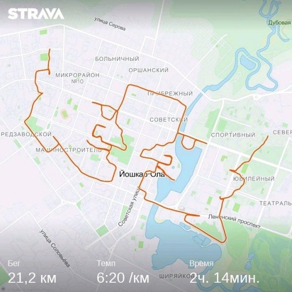 На выставке жители и гости марийской столицы могут увидеть GPS- рисунки, созданные с 2018 по 2022 годы при помощи беговых гаджетов и фитнес-приложений в ходе так называемых фигуративных пробежек.