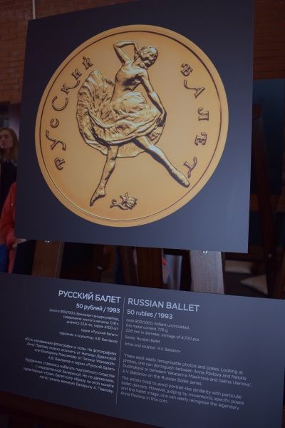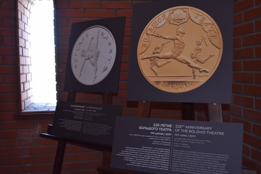 Посетители выставки в Благовещенской башне имеют возможность увидеть, как выглядят монеты «Раймонда», «Русский балет», «Щелкунчик», «Спящая красавица», «200-летие со дня рождения Н.В. Гоголя», «Творчество Джузеппе Верди» и другие, всего около 20 наименований. Есть здесь и «Магия театра».