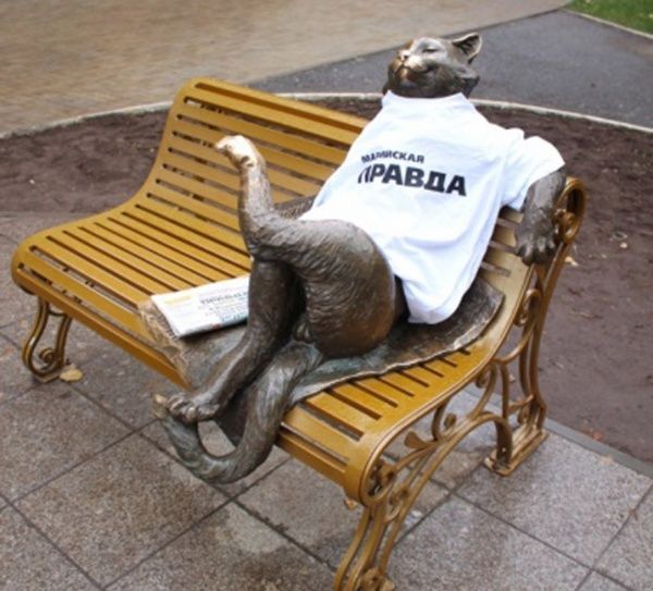 Перед тем, как объявить конкурс на самый креативный памятник, эксперты популярного туристического сервиса изучили тысячи изваяний во всех регионах страны, а сто самых неординарных перевели в 3D-формат. После этого началось народное голосование. Скульптура вальяжного кота из Йошкар-Олы прошла в финал и уступила лишь памятнику тувинской письменности (музей-заповедник «Белдир-Кежии» в Тыве), скульптуре «Свидание» из Курска и Комару — хранителю Сибири из Ноябрьска.