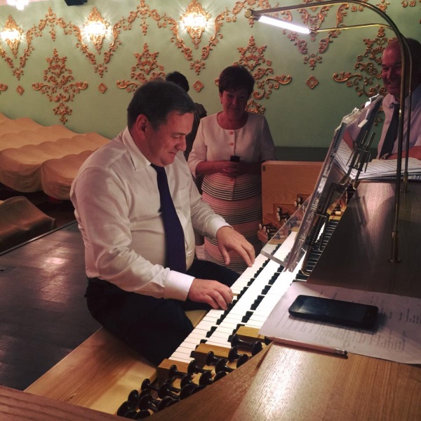 Более того, заместитель министра взял несколько аккордов на уникальной органной консоле, которая установлена в театре.