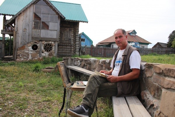 Сергей Сергеевич много делает для родной деревни. По его проекту был восстановлен и благоустроен местный родник. На своем участке художник открыл дом-музей отца и настоящую галерею! Дом творчества строили всей деревней. Сейчас в этом необычном, очень красивом здании вывешены на всеобщий обзор некоторые картины моего собеседника и произведения других авторов, стиль и почерк которых близки по духу хозяину этого своеобразного музея. Честно говоря, увиденное поражает! Не часто встречала в далеких деревушках какой-нибудь арт-объект, а такое музейное пространство посетила впервые!