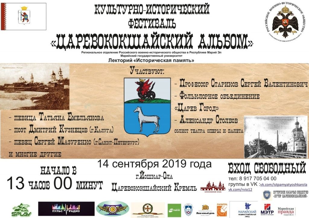 Такой культурно-исторический фестиваль в марийской столице пройдет впервые и будет сочетать в себе два формата: концертно-поэтический и научно-исторический. 14 сентября жители и гости Йошкар-Олы побывают на выступлениях талантливых танцоров, исполнителей песен и художественных коллективов, встречах с писателями и журналистами, учеными и краеведами.
