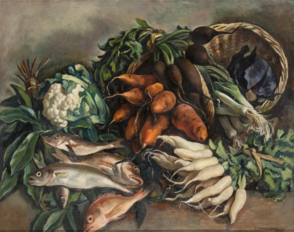Первая мировая война и революции положили конец этому «сытому веселью». Гастрономическим символом последовавших голодных лет стала селедка, входившая вместе с черным хлебом в продовольственный паек. Это можнр увидеть, к примеру, на картине «Селедка и лимон» (1923) Зинаиды Серебряковой.