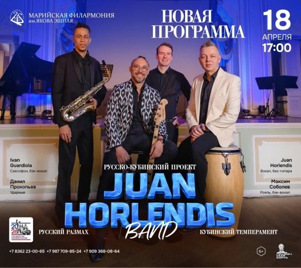 Марийская государственная филармония имени Я. Эшпая 18 апреля приглашает всех жителей Марий Эл на концерт русско-кубинского проекта Juan Horlendis band (6+).