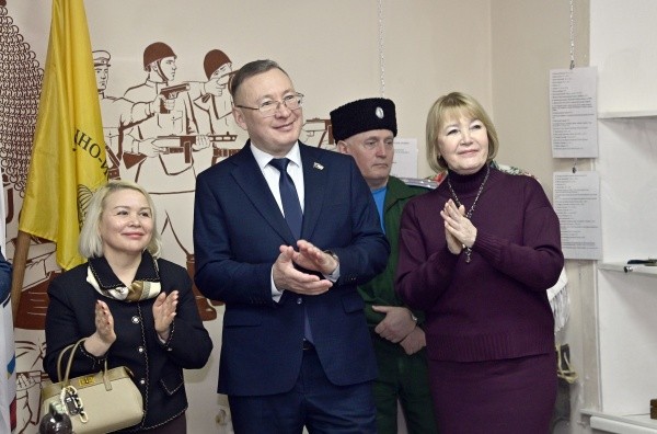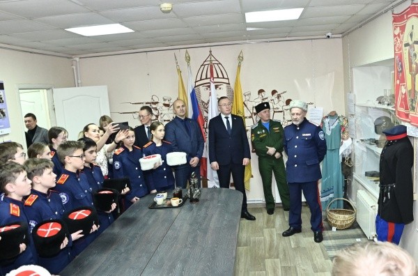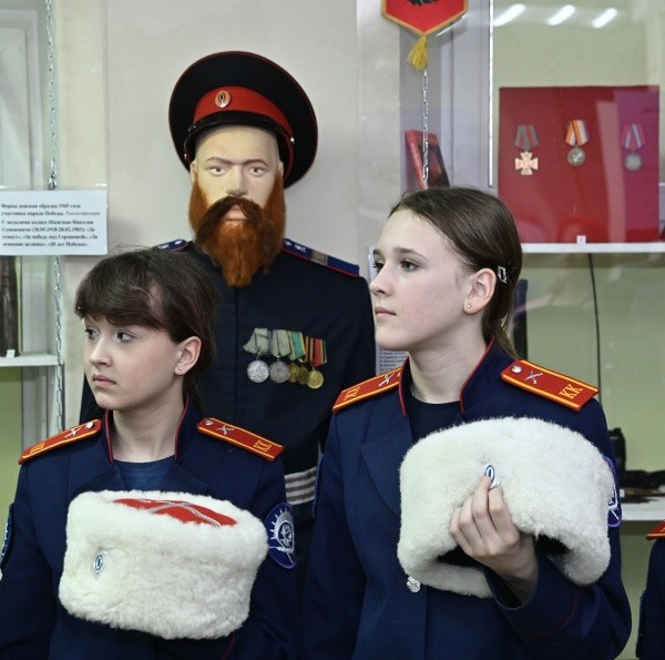 Главным экскурсоводом выступил автор и идейный вдохновитель проекта, товарищ атамана, есаул Андрей Фещуков. Он провел первых посетителей – почетных гостей и юных казачат-кадетов из школы № 32 по экспозиции.