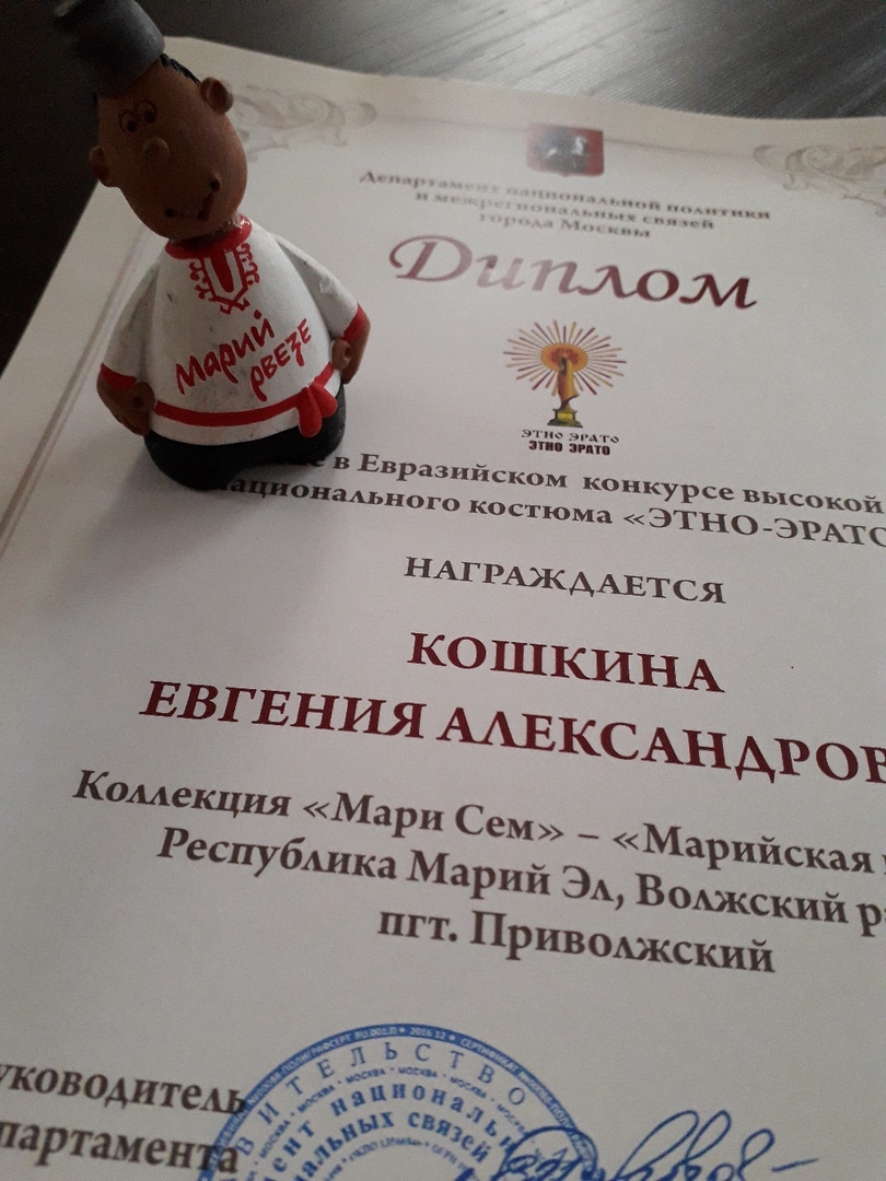 – На конкурсе в Москве я была два дня. Первый - полностью провела на отборе (представляете, жюри весь день, с 9.00 до 10.00, выбирало модельеров!), а уже во второй день прошел сам показ. В Большом зале Правительства Москвы на Новом Арбате состоялся заключительный гала-концерт лауреатов и дипломантов конкурса «Этно-Эрато», на котором я среди многих участников представляла свою коллекцию. Моделями были девушки из марийского сообщества Москвы и Подмосковья, которым я очень благодарна.