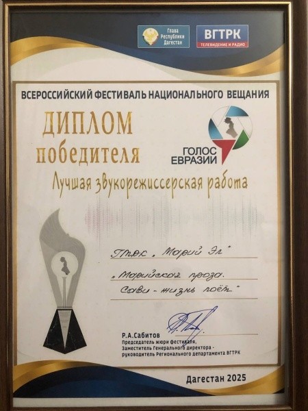 Работа Константина Мягчилова заняла первое место на фестивале «Голос Евразии – 2025» в номинации «Лучшая звукорежиссерская работа».
