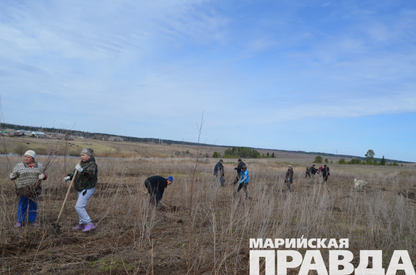 На склоне за селом Салтакъял Куженерского района Марий Эл в этот субботний день было непривычно многолюдно. Казалось бы, что тут людям делать, ибо место заброшенное, ничего кроме травы и бурьяна не растет. Точнее не росло, так как на этом пустыре салтакъяльцы решили разбить вишнево-сливовый сад Победы.