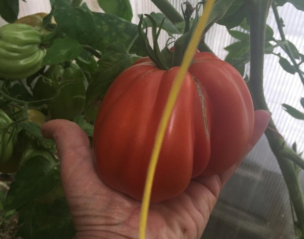 Огурцы у Елены знатные: некоторые бывают и по полкило, а в самом длинном хозяйка намерила 43 сантиметра. Помидоры тоже богатырские: вытягивают до 600, 700 и даже 750 граммов.