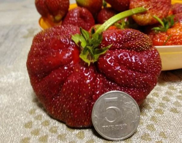 Клубника и 5-рублевая монета.