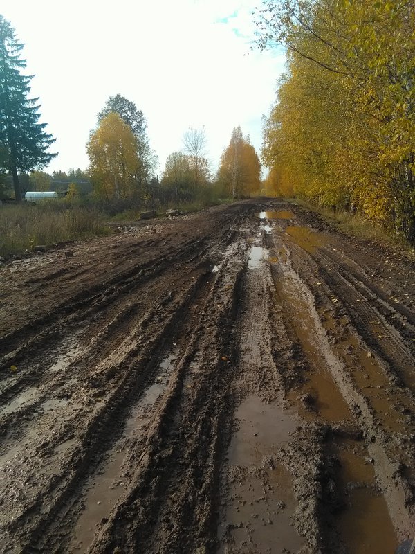 Еще недавно по этому участку, где теперь ровным слоем уложен щебень, трудно было пройти или проехать, особенно в весеннюю и осеннюю распутицу: проезжая часть была полностью разбита, колеи по всей дороге, а сама дамба не всегда полностью просыхала даже летом.