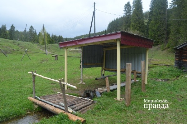В овраге, что делит пополам деревню Ирмарь Куженерского района, недавно раздавался шум топоров и бензопил. Мужики соорудили здесь крышу над объектом со странным для современного человека названием - «полоскалка».