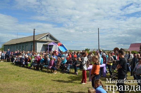 На площадке возле сельского клуба появилась празднично украшенная сцена, скамейки и скопление людей. Поздравить сельчан с праздником приехали генеральный директор ООО «Марикоммунэнерго» Сергей Белоусов, заместитель главы администрации района Ольга Белоусова, руководитель ООО «Шема» Ахмед Хасиев.