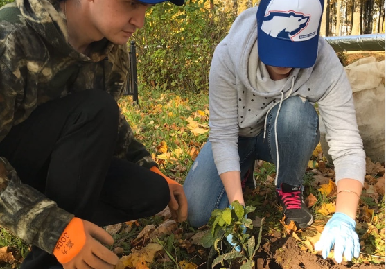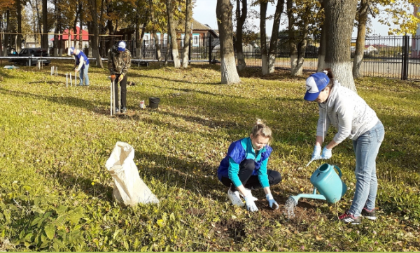 Активисты и секретарь местного отделения Андрей Шабалин высадили саженцы каштана на территории парка в поселке Оршанка.