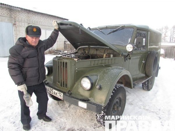 В потоке машин на дорогах автомобиль Владимира Щекотова из деревни Марково Оршанского района особенно заметен. И вовсе не потому, что это какой-нибудь супердорогой внедорожник иностранного производства с оригинальными колесными дисками и необычной аэрографией. А как раз наоборот. Владимир Степанович уже почти 15 лет ездит на отечественном ГАЗ-69 – автомобиле-легенде, российском вездеходе. В свое время эта машина пользовалась заслуженной любовью у военных, работников сельского хозяйства.