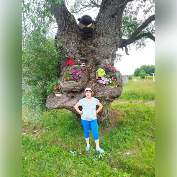 – Я живу напротив нашего векового дерева. Помню, как около него остановилась пожилая женщина и начала плакать. Тогда она мне сказала, что это дерево ее молодости, здесь она играла, когда еще была совсем маленькой девочкой. Эта история меня очень удивила, – рассказывает Людмила Горохова. – И я подумала, а почему бы не поставить в огромные дупла небольшие цветники. Потом пришла идея посадить русалку, а на следующий год на дереве оказалась обезьяна.