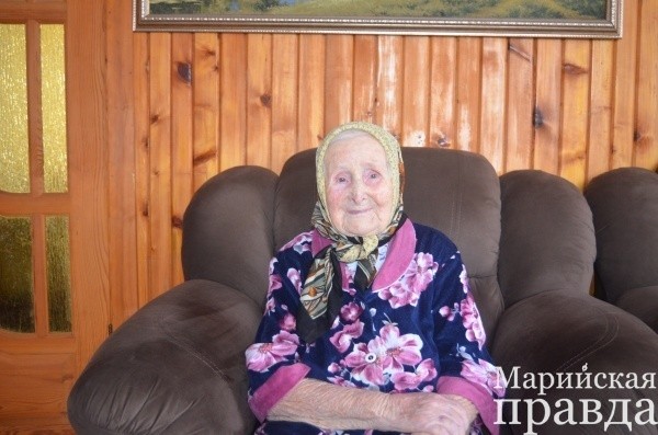 Разговор с Анастасией Петровной Куимовой из мари-турекской деревни Энгербал (Марий Эл)— это как путешествие во времени, потому что все, что она рассказывает о своей молодости, мы знаем только по учебникам истории. Дело в том, что долгожительнице полных 102 года(!), она появилась на свет в бедной крестьянской семье в деревне Конышево нынешнего Мари-Турекского района. В стране еще шла гражданская война, в Поволжье от голода массово умирали люди.