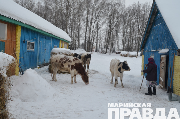 Накануне прошел сильнейший снегопад, деревню Большой Шокшем Сернурского района Марий Эл завалило сугробами, поэтому Иван Малинин встретил нас подуставший и с лопатой в руках. Хозяйство у него большущее, воевать со снегом приходится всерьез.