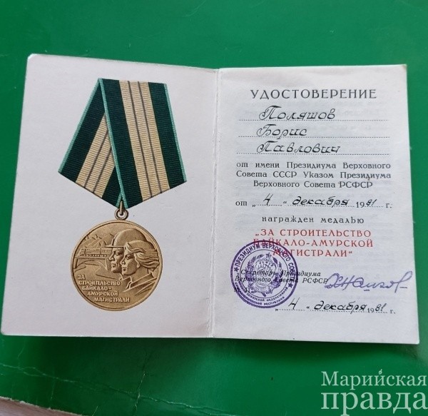 Уникальный транспортный маршрут «Байкало-Амурская магистраль» для тысяч парней и девчат Советского Союза стал одним из главных событий жизни. Участие в строительстве легендарной железнодорожной магистрали принимал йошкаролинец Борис Павлович Поляшов.