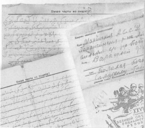 К сожалению, мы сегодня не можем их прочитать, потому что дедушка писал по-арабски: во времена его детства, когда он учился писать, письменным выражением татарского языка был арабский алфавит, а не русский, как сейчас. Мама понимала, что написано в этих письмах, а мы не понимаем... Знаем об их содержании только с ее слов.