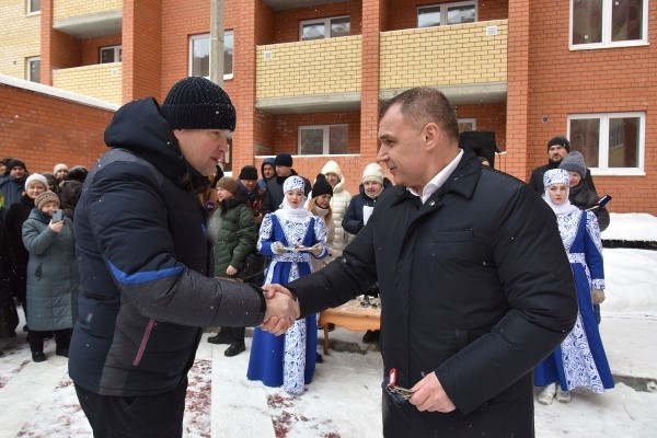 Руководитель республики поздравил новосёлов с долгожданным событием. Он также напомнил, что переселение граждан проходит в рамках реализации третьего этапа республиканской адресной программы «Переселение граждан из аварийного жилищного фонда». Данный проект будет продолжен в 2023 году.
