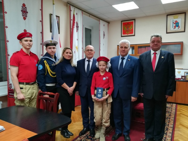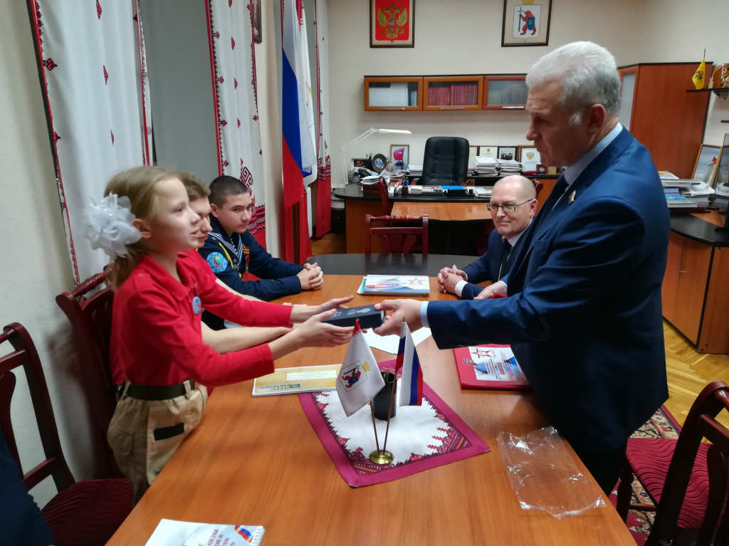 Встреча прошла в Доме Правительства Марий Эл. Участвовали региональный куратор «Юнармии» Александр Мухачев, а также активисты «Юнармии». Речь шла о деятельности организации и истории становления движения в Марий Эл, о самых ярких достижениях её активистов. На встречу были также приглашены юнга парусного клуба «Паллада», 11-классник Дмитрий Матвеев, учащийся йошкар-олинского лицея №11 Артём Васильев и юная ученица школы №16 в Йошкар-Оле Ульяна с мамой Валентиной Наумовой.