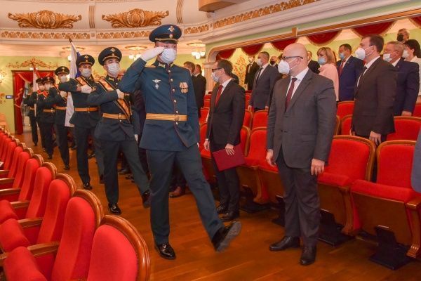 В приветственном слове Глава региона Александр Евстифеев отметил, что сегодня отмечаются сразу два значимых праздника - 100-летие республики и День народного единства, и зачитал поздравление Президента России Владимира Путина.